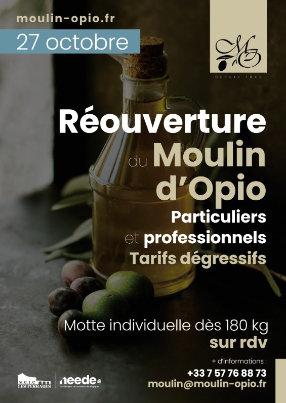Le 7 juillet 2025, le Conseil Communautaire de la CASA a finalement choisi le projet porté par la SCIC des Ferrages et par l’association Neede pour assurer la gestion du site du moulin d’Opio pour les 20 prochaines années.