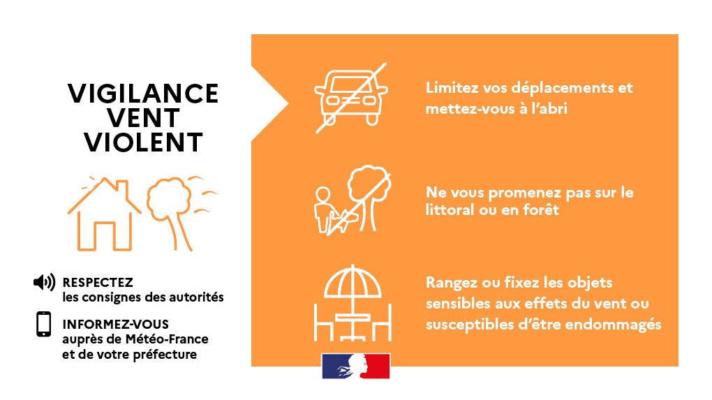 Pour plus d’informations, merci de vous référer à la carte de vigilance Météo France disponible : http://vigilance.meteofrance.com.